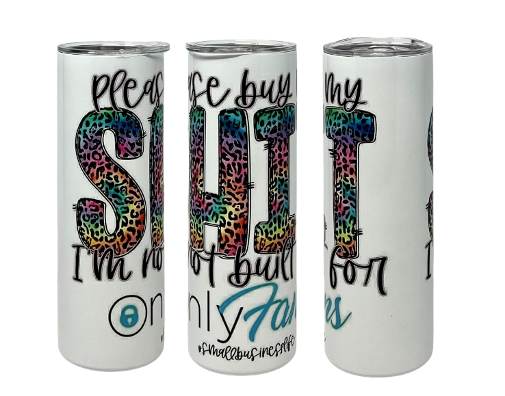 Cup reads "Please buy my Shit, I'm not built for Only Fans #smallbusinesslife"
