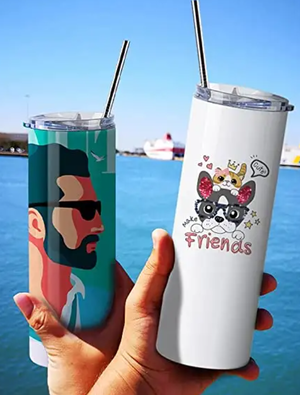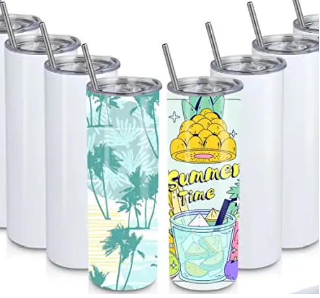 These 20 ounce tumblers are ideal for sublimation! Both metal and plastic straw included as well as a rubber bottom. These are blanks, completely white with no design.